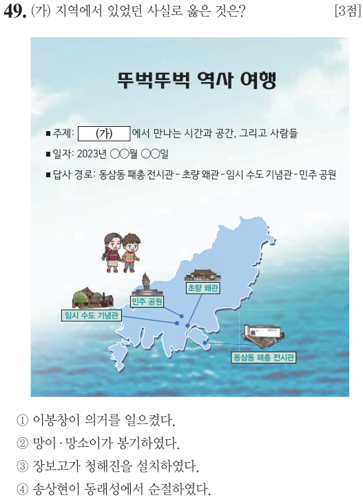 지도만 봐도 알 수 있는 학생들이 있을 수 있겠습니다. 임시수도.. 6.25전쟁 중에 임시수도이기도 했습니다. 초량왜관은 임진왜란 후 일본과 교역했던 곳입니다. 이곳은 바로 부산입니다.