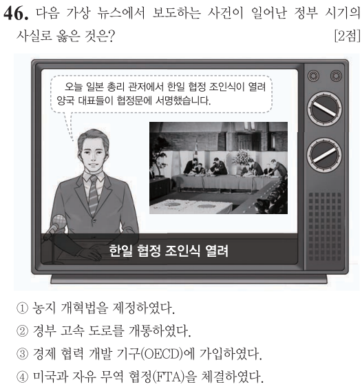 한일협정은 1965년에 있었습니다. 이시기 대통령은 박정희입니다.