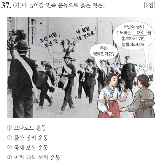 한 가지 생각해 보아야 할 부분은!! 물산장려운동 자체의 취지는 참 좋습니다.... 그러나 제조기술 부족으로 조선인이 만드는 상품의 물량이 많지 않았다는 점!! 질이 떨어진다는 점!! 물산장려운동으로 갑자기 과잉수요가 발생했다는 점!!