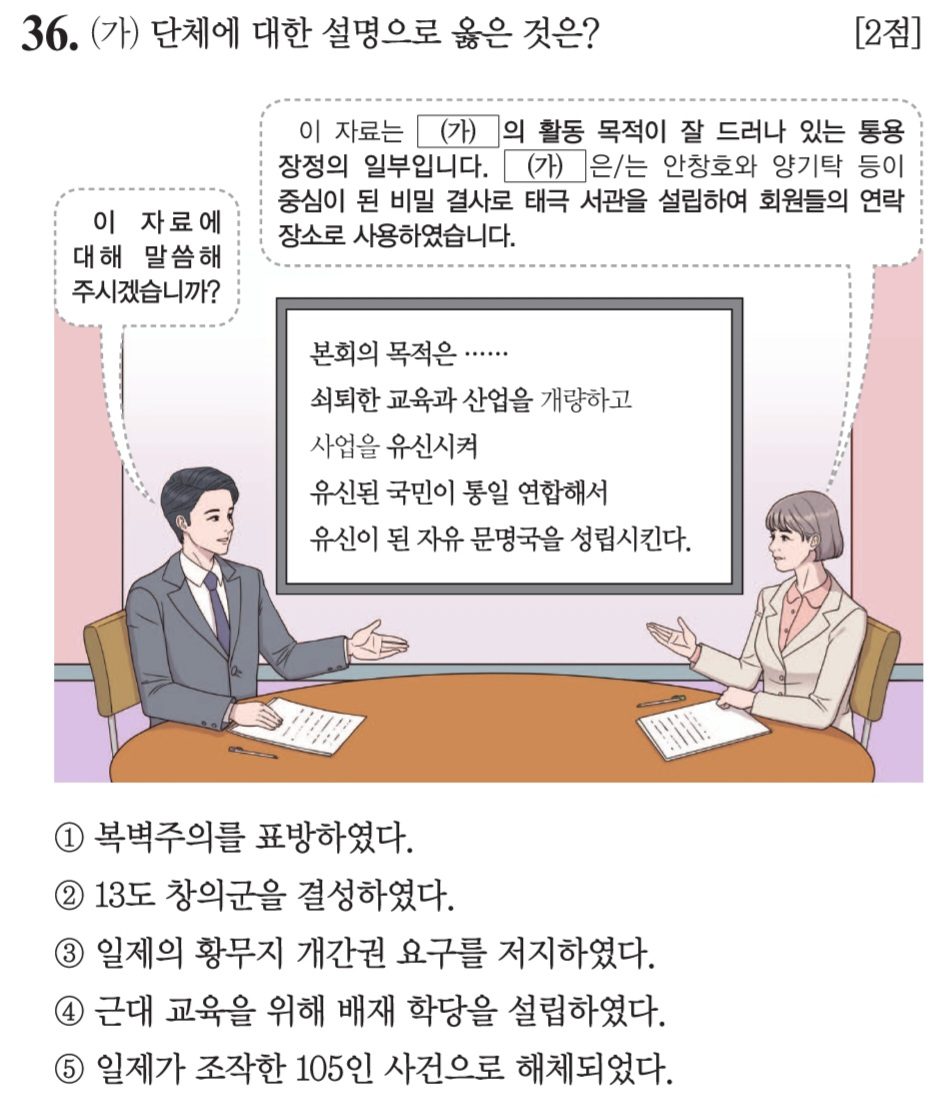 제 68회 한국사능력검정시험(심화) 36번 문제 풀이