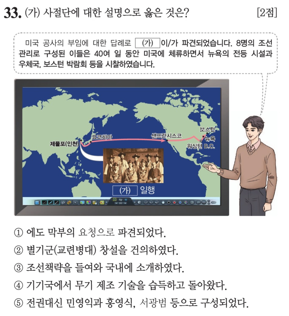미국에 파견 된 사신단으로 보빙사입니다. 1882년 조미수호통상조약이후 미국에 보내진 사신단으로 1883년에 파견되었습니다.