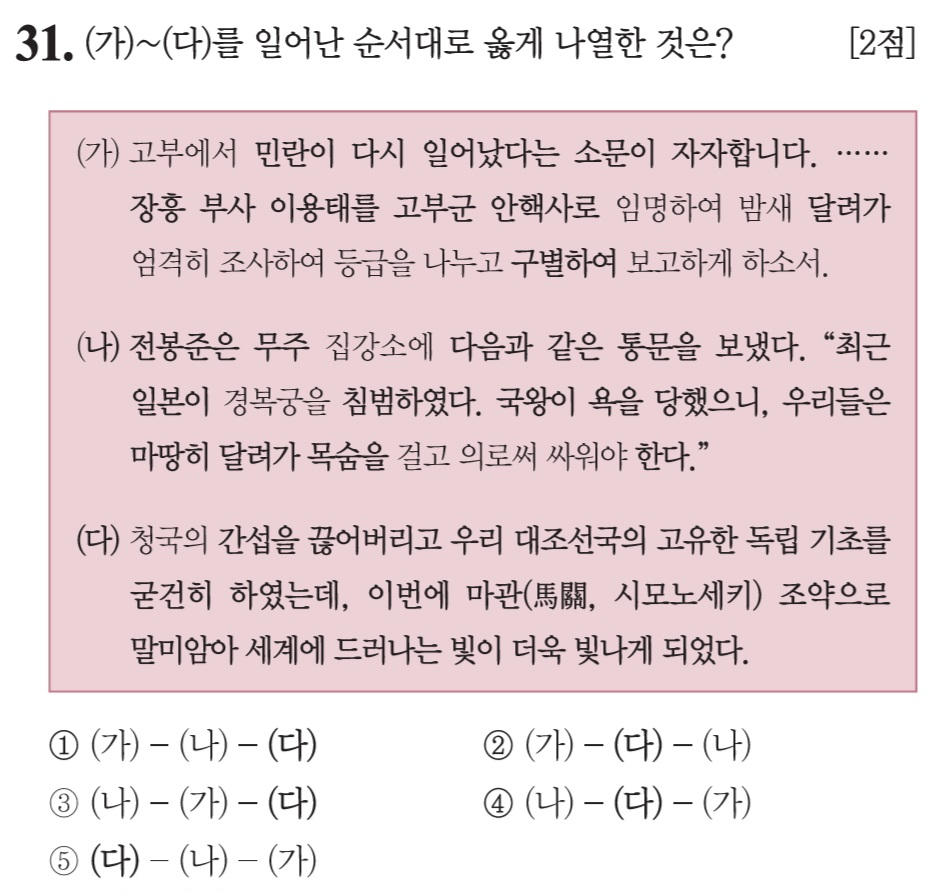제 68회 한국사능력검정시험(심화) 31번 문제 풀이