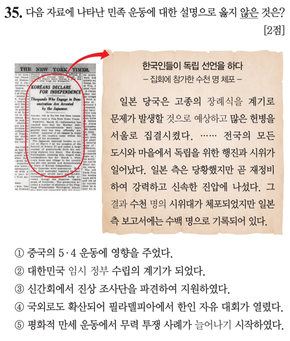 제 68회 한국사능력검정시험(심화) 35번 문제 풀이