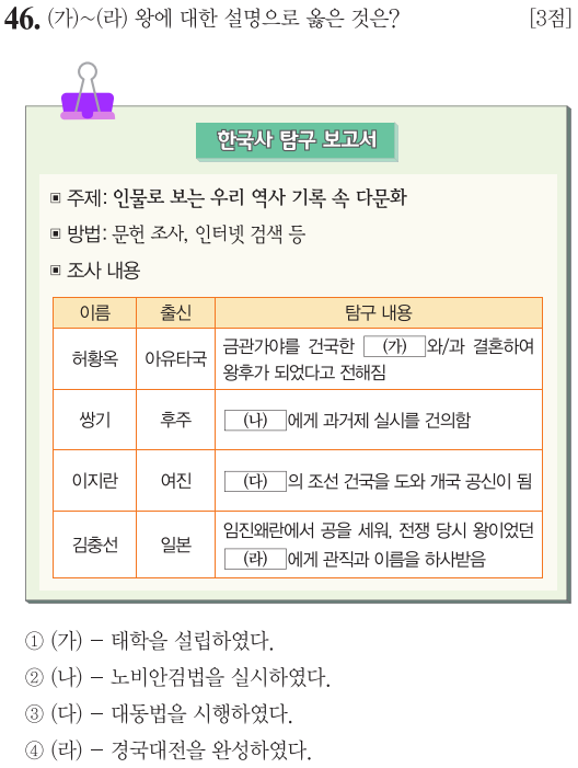 제 69회 한국사능력검정시험(기본) 46번 문제 풀이