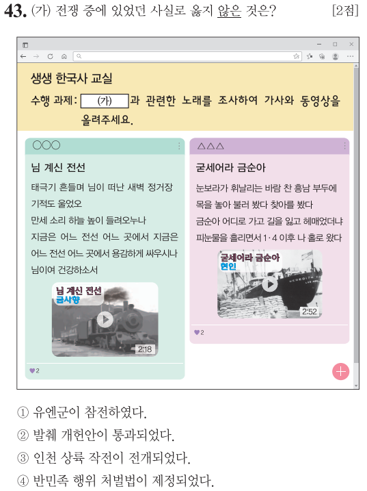 제 69회 한국사능력검정시험(기본) 43번 문제 풀이