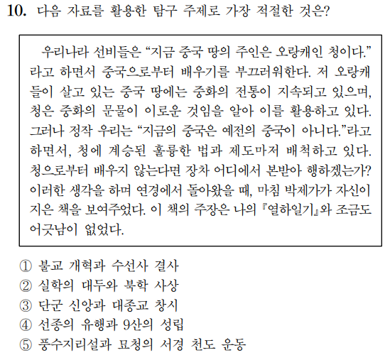 2022학년도 대학수학능력시험 문제지 한국사 문제 10번 풀이