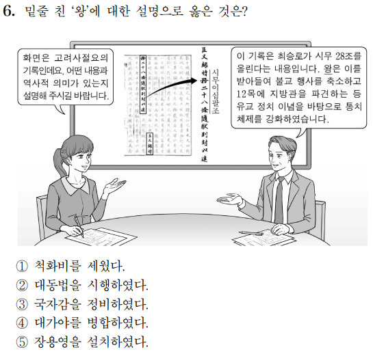 2022학년도 대학수학능력시험 문제지 한국사 문제 6번 풀이
