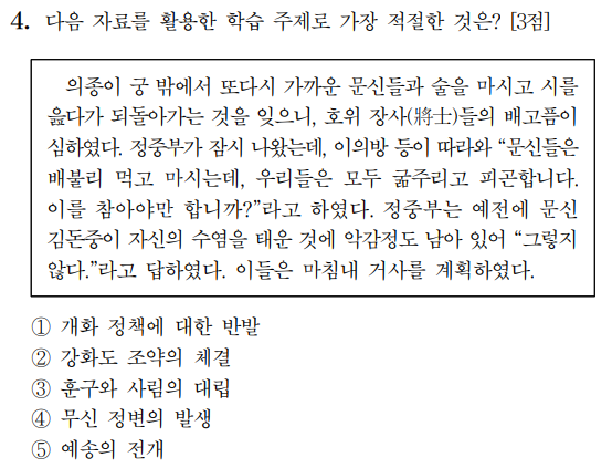 2022학년도 대학수학능력시험 문제지 한국사 문제 4번 풀이