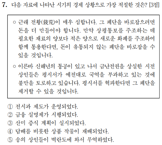 2022학년도 대학수학능력시험 문제지 한국사 문제 7번 풀이
