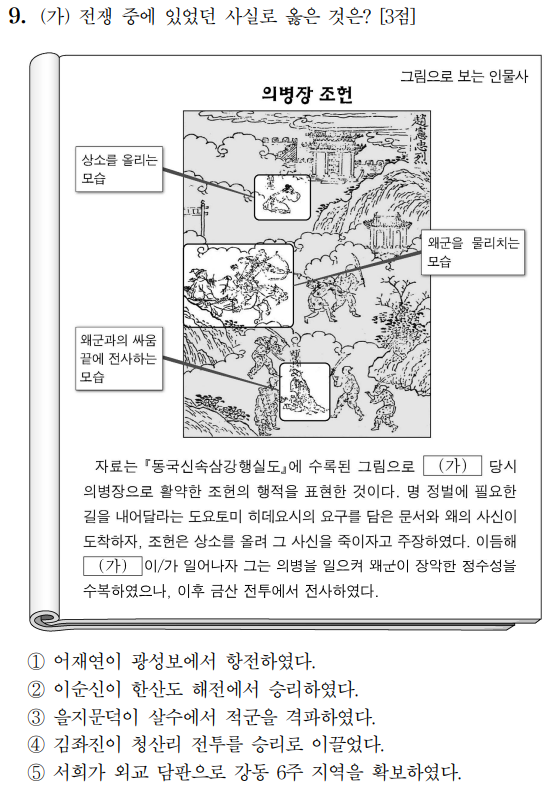 2022학년도 대학수학능력시험 문제지 한국사 문제 9번 풀이