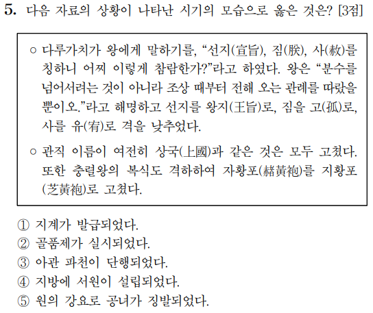 2022학년도 대학수학능력시험 문제지 한국사 문제 5번 풀이