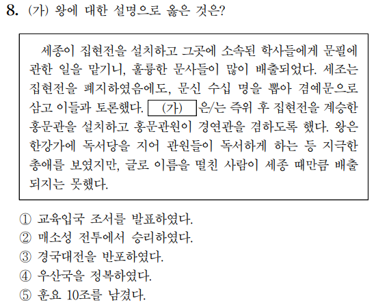 2022학년도 대학수학능력시험 문제지 한국사 문제 8번 풀이