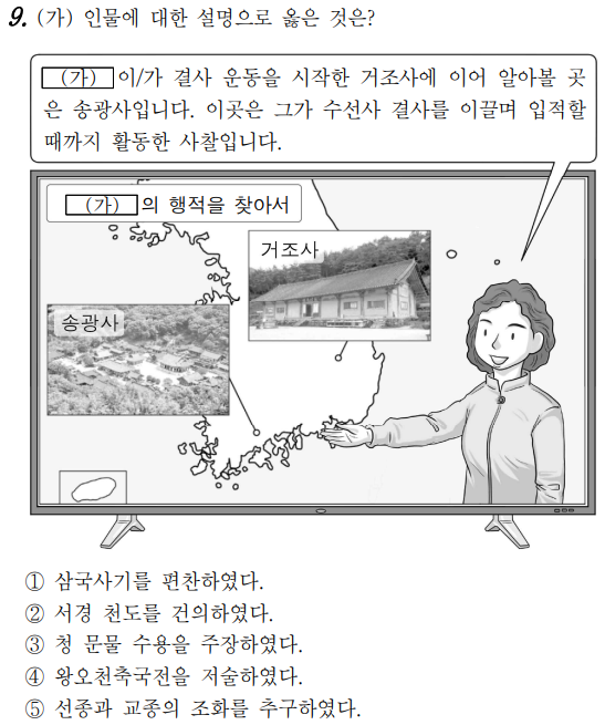 대구 팔공산 자락에 있는 거조사에서 정혜결사를 시작하였고 전남 순천 송광사에서.. 당시 수선사에서 불교 개혁운동인 결사운동을 통해 조계종을 창시하였습니다. (가)인물은 조계종을 창시한 지눌입니다.