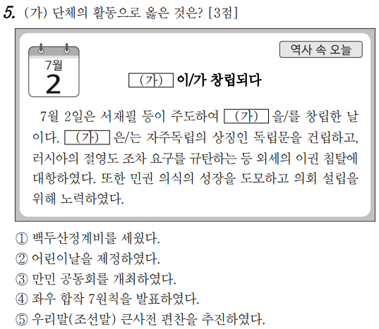 2023학년도 11월 전국연합학력평가 문제지 한국사 문제 5번 풀이
