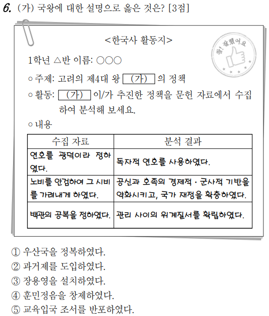 2023학년도 11월 전국연합학력평가 문제지 한국사 문제 6번 풀이
