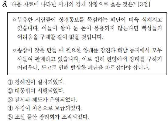 2023학년도 11월 전국연합학력평가 문제지 한국사 문제 8번 풀이