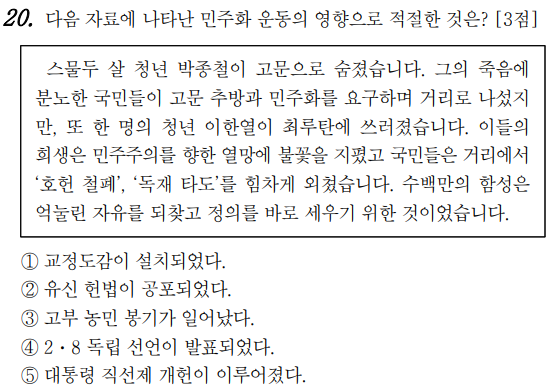 2023학년도 11월 전국연합학력평가 문제지 한국사 문제 20번 풀이