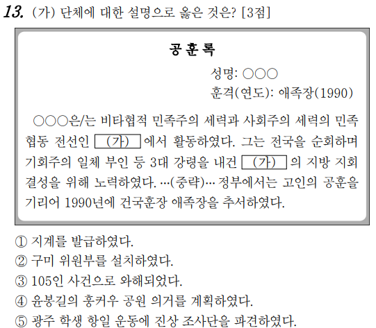2023학년도 11월 전국연합학력평가 문제지 한국사 문제 13번 풀이