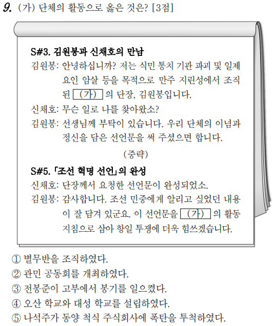 2023학년도 11월 전국연합학력평가 문제지 한국사 문제 9번 풀이