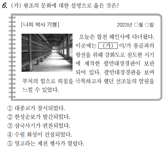 2023학년도 11월 전국연합학력평가 문제지 한국사 문제 6번 풀이