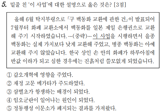 2023학년도 11월 전국연합학력평가 문제지 한국사 문제 5번 풀이