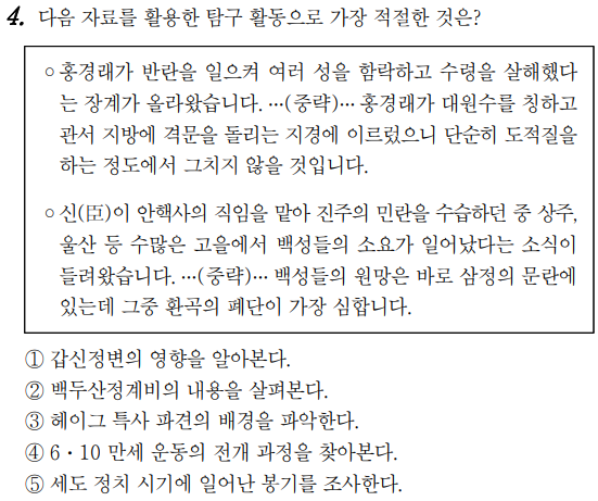 2023학년도 11월 전국연합학력평가 문제지 한국사 문제 4번 풀이