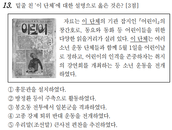 2023학년도 11월 전국연합학력평가 문제지 한국사 문제 13번 풀이