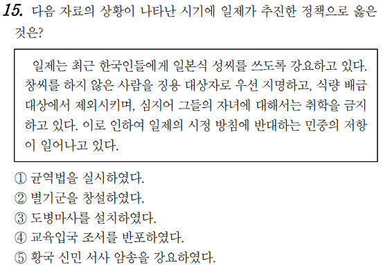 ⑤ 황국신민서사시 암송은 1930년대 통치방식입니다.