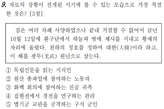 2023학년도 3월 고3 전국연합학력평가 문제지 한국사 문제 9번 풀이