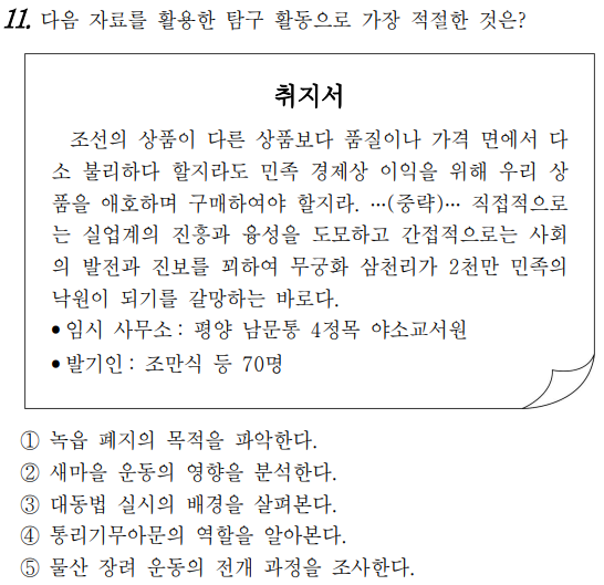 2023학년도 3월 고3 전국연합학력평가 문제지 한국사 문제 11번 풀이