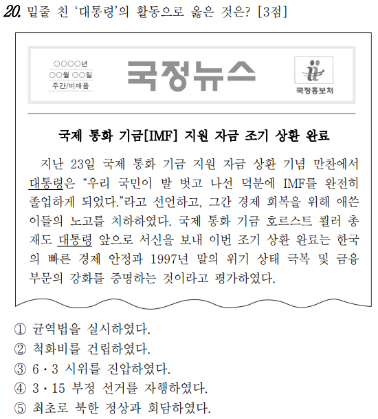 2023학년도 3월 고3 전국연합학력평가 문제지 한국사 문제 20번 풀이