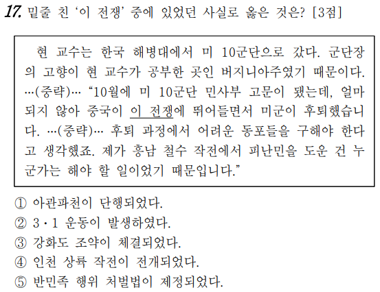 2023학년도 3월 고3 전국연합학력평가 문제지 한국사 문제 17번 풀이