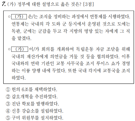 2023학년도 4월 고3 전국연합학력평가 문제지 한국사 문제 7번 풀이