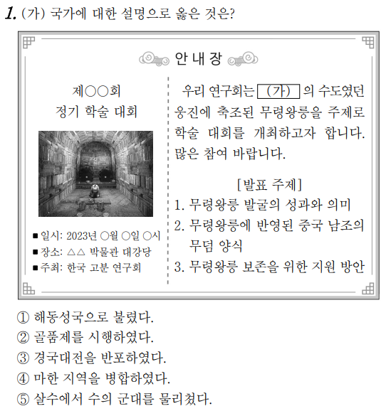 2023학년도 4월 고3 전국연합학력평가 문제지 한국사 문제 2번 풀이
