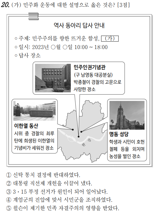 2023학년도 4월 고3 전국연합학력평가 문제지 한국사 문제 20번 풀이