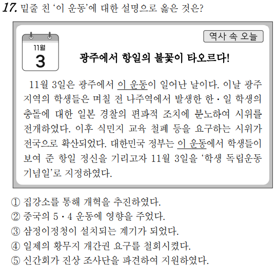 2023학년도 4월 고3 전국연합학력평가 문제지 한국사 문제 17번 풀이