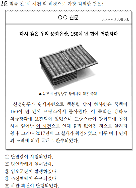 2023학년도 4월 고3 전국연합학력평가 문제지 한국사 문제 15번 풀이