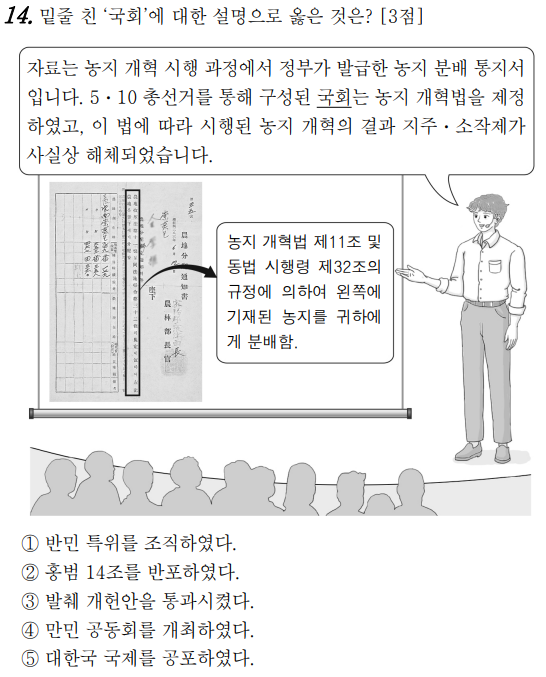 2023학년도 4월 고3 전국연합학력평가 문제지 한국사 문제 14번 풀이