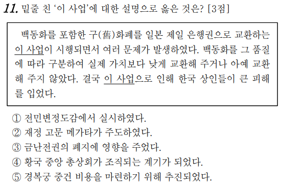 2023학년도 4월 고3 전국연합학력평가 문제지 한국사 문제 11번 풀이