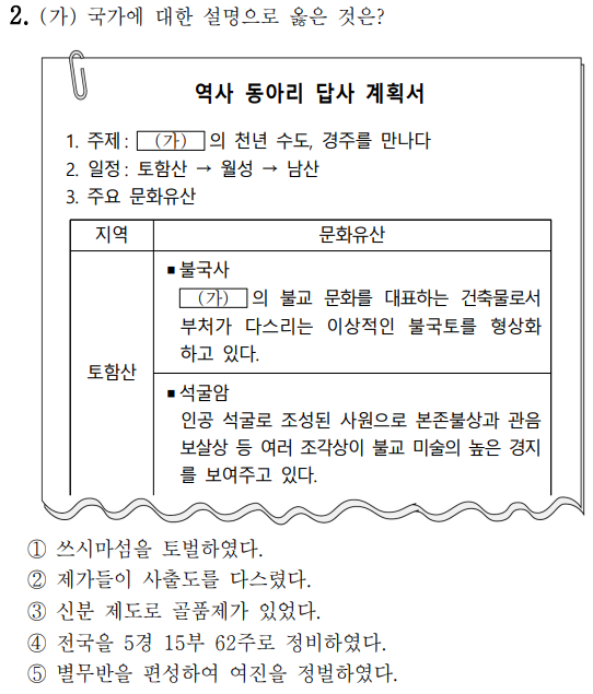 2023학년도 6월 고2 전국연합학력평가 문제지 한국사 문제 2번 풀이