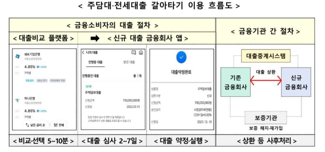 위와 같은 흐름으로 대환 대출이 가능합니다. 확인해 보시고 고금리로 허덕이고... 열심히 일 한 돈을 은행에 받쳐야 하는 현실을 조금이나마 개선하여 생활의 여력과 활력을 되찾는 분들이 많아지시면 좋겠습니다!