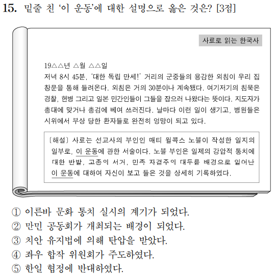 2024학년도 대학수학능력시험 문제지 한국사 15번 문제 풀이