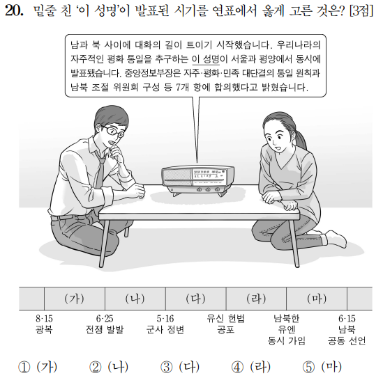2024학년도 대학수학능력시험 문제지 한국사 20번 문제 풀이