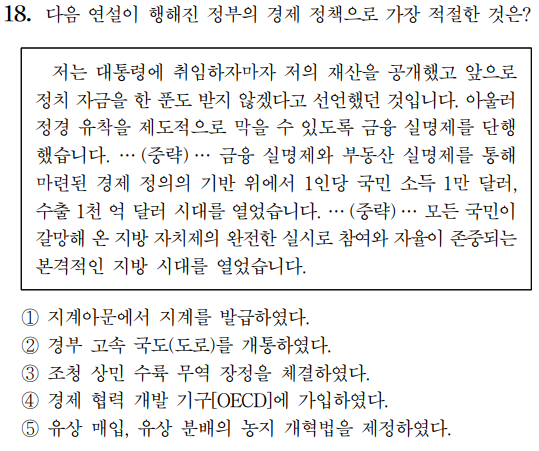 2024학년도 대학수학능력시험 문제지 한국사 18번 문제 풀이