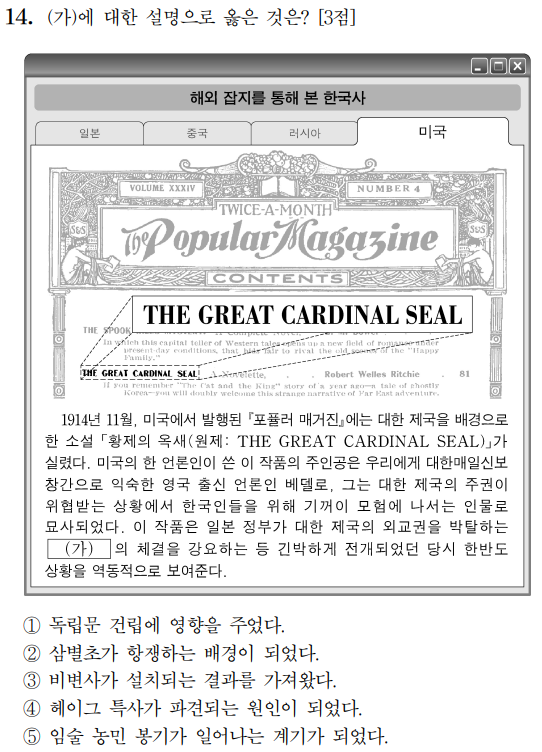 2024학년도 대학수학능력시험 문제지 한국사 14번 문제 풀이