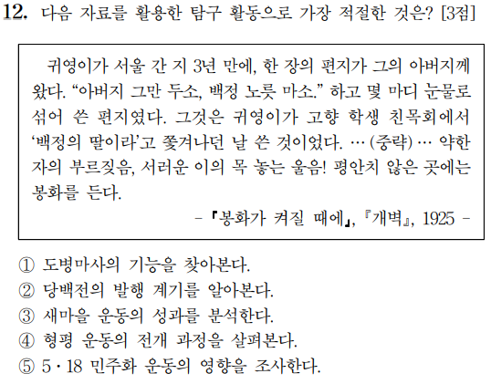 2024학년도 대학수학능력시험 문제지 한국사 12번 문제 풀이