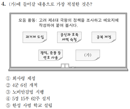 고려 4대 국왕은 광종입니다. 광종과 관련된 내용을 고르면 되겠습니다.