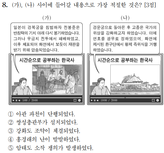 ① 아관파천은 1896년입니다. (가)와 (나) 사이에 있었습니다.