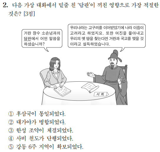 거란장수 소손녕, 그와 벌인 담판, 벌써 이 단서만으로도 감이 오시죠? 서희의 외교담판(993년)입니다. 서희는 거란1차 침입당시 적 장수와의 대화를 통해 싸우지 않고 압록강 하류의 강동6주를 획득하는 전공을 거두었습니다.