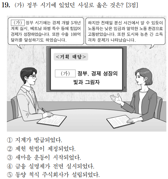 경제개발5개년계획 실시(1962년), 베트남 파병, 수출 100억불 달성, 경부고속도로건설 등등 아마... 영화 국제시장을 보신 분들이라면 좀 더 쉽게 확인가능할 것으로 보입니다. (가)정부는 박정희 정부입니다.